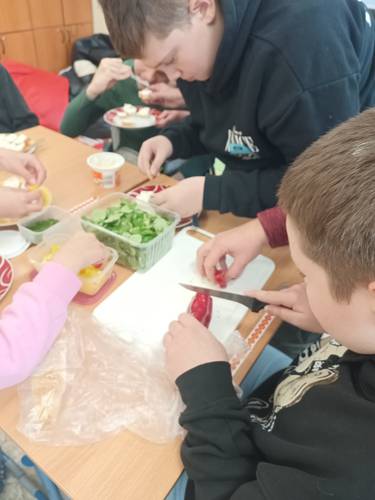 Ve III.A jsme si nejprve společně přečetli a připomněli legendu o sv. Martinovi. Mladší žáci si pak procvičili ruce při grafomotorickém cvičení - hledali a vyznačovali cestičky od pláště, husy a koně ke sv. Martinovi, starší si zapsali několik vět z příběhu. Poté jsme se pustili do tvoření - z papíru vznikali krásní koně, na kterých by svatý Martin jistě rád přijel. Nechyběla ani příprava zdravého pohoštění, které si žáci sami nachystali a s chutí snědli.