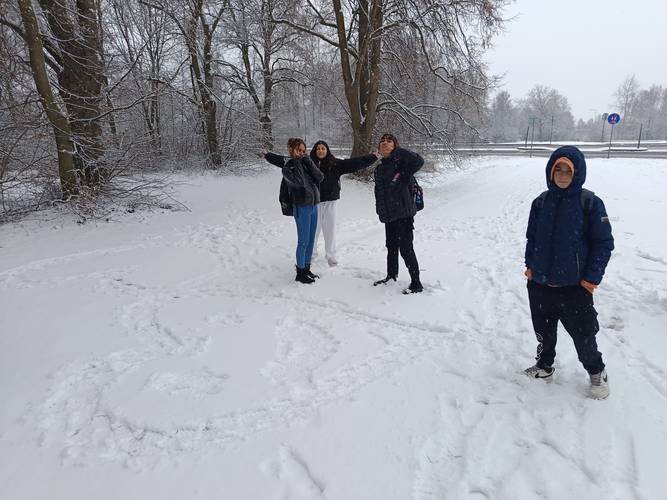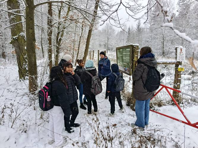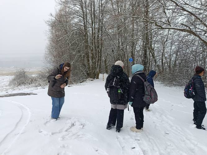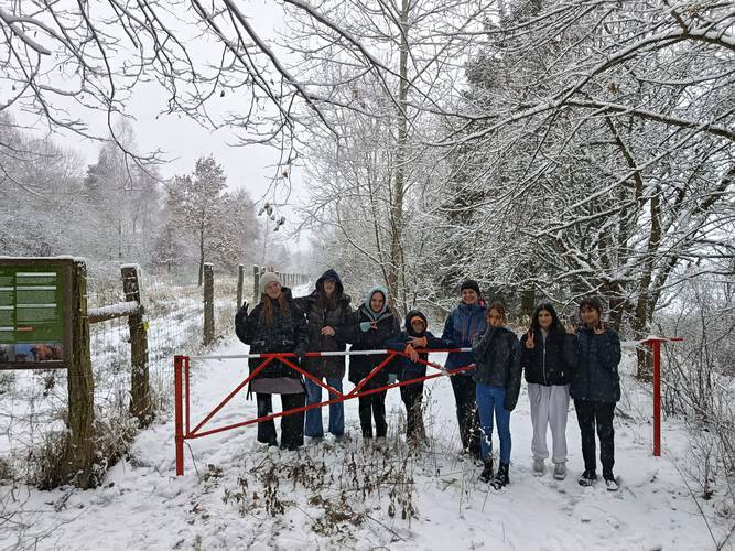 S novým přívalem sněhové nadílky se po vydání pololetního vysvědčení žáci IX. třídy vypravili na zimní vycházku do kotelského polesí. Cílem byli koně a zubři v místní přírodní rezervaci. Vzhledem k panujícímu počasí a užívání si zimních sněhových radovánek cestou k oboře však skupinka turistů dorazila pouze na okraj rezervace. Zde si žáci přečetli informace o významu chovu exmoorských koní a zubrů evropských i o obnově jejich původního biotopu. Cestou zpět si ještě naplno užili sněhovou nadílku a následně i pololetní prázdniny.