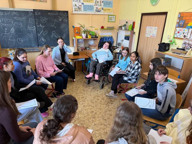 V rámci programu „Třída plná pohody“ proběhla v V., VII. a IX. třídě beseda s pracovnicemi PPP zaměřená na komunikaci a uvědomění si životních hodnot. Žáci si v průběhu řízené činnosti sdíleli své myšlenky a učili se naslouchat druhým v respektujícím prostředí. Setkání přispělo k posílení vzájemných vztahů ve třídě, rozvoji empatie a komunikačních dovedností.